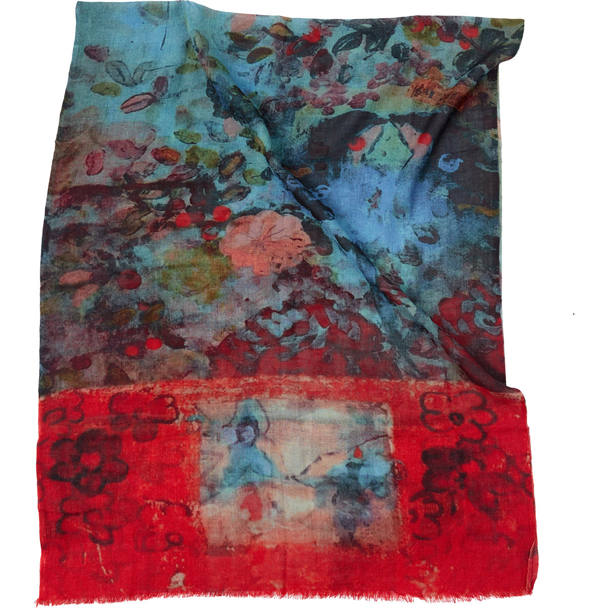 Langer Schal aus einer weichen Woll/Seiden qualität mit abstraktem Print und offenen Enden.