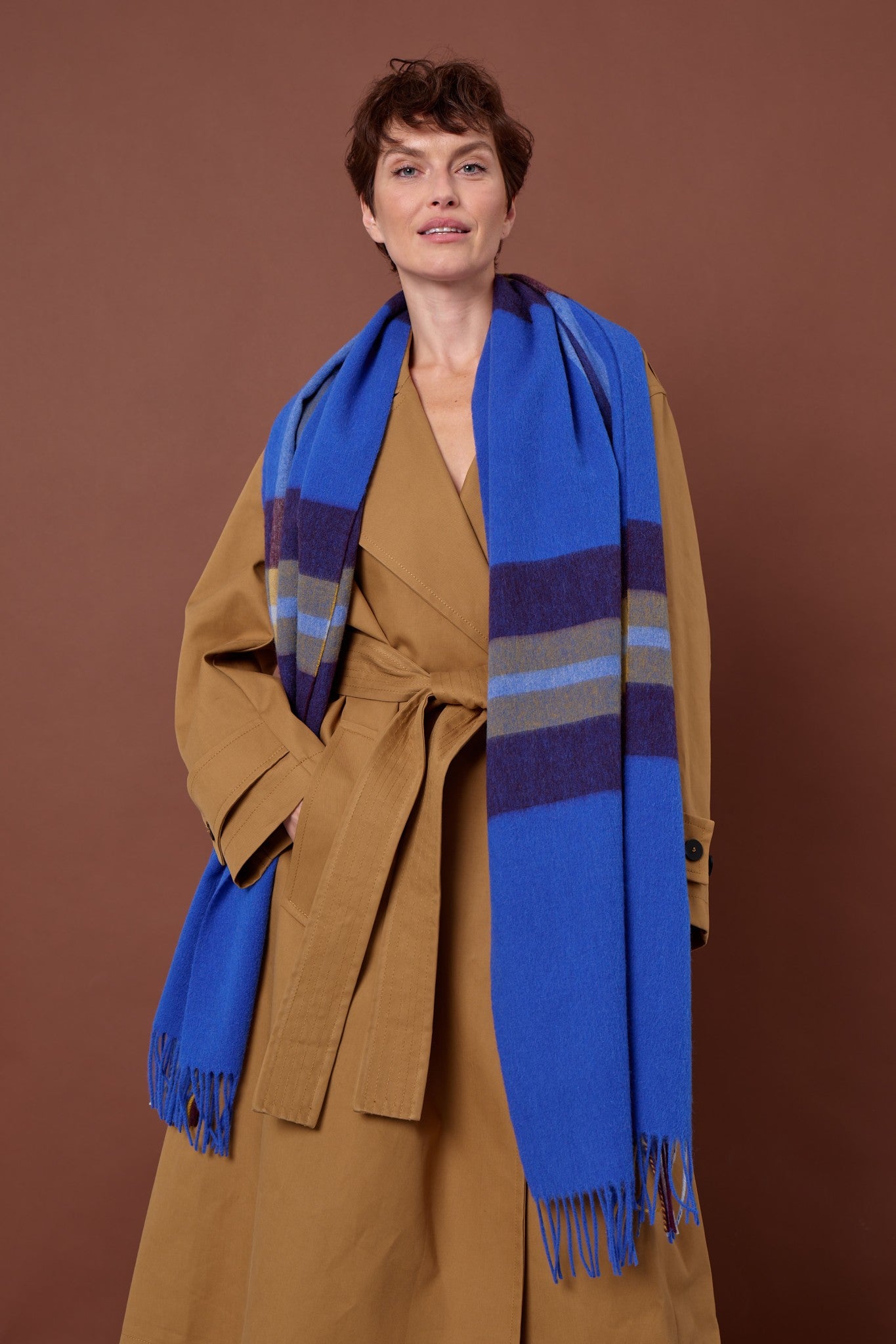 Langes, weiches und voluminöses Wollschal mit Fransen an den Enden.