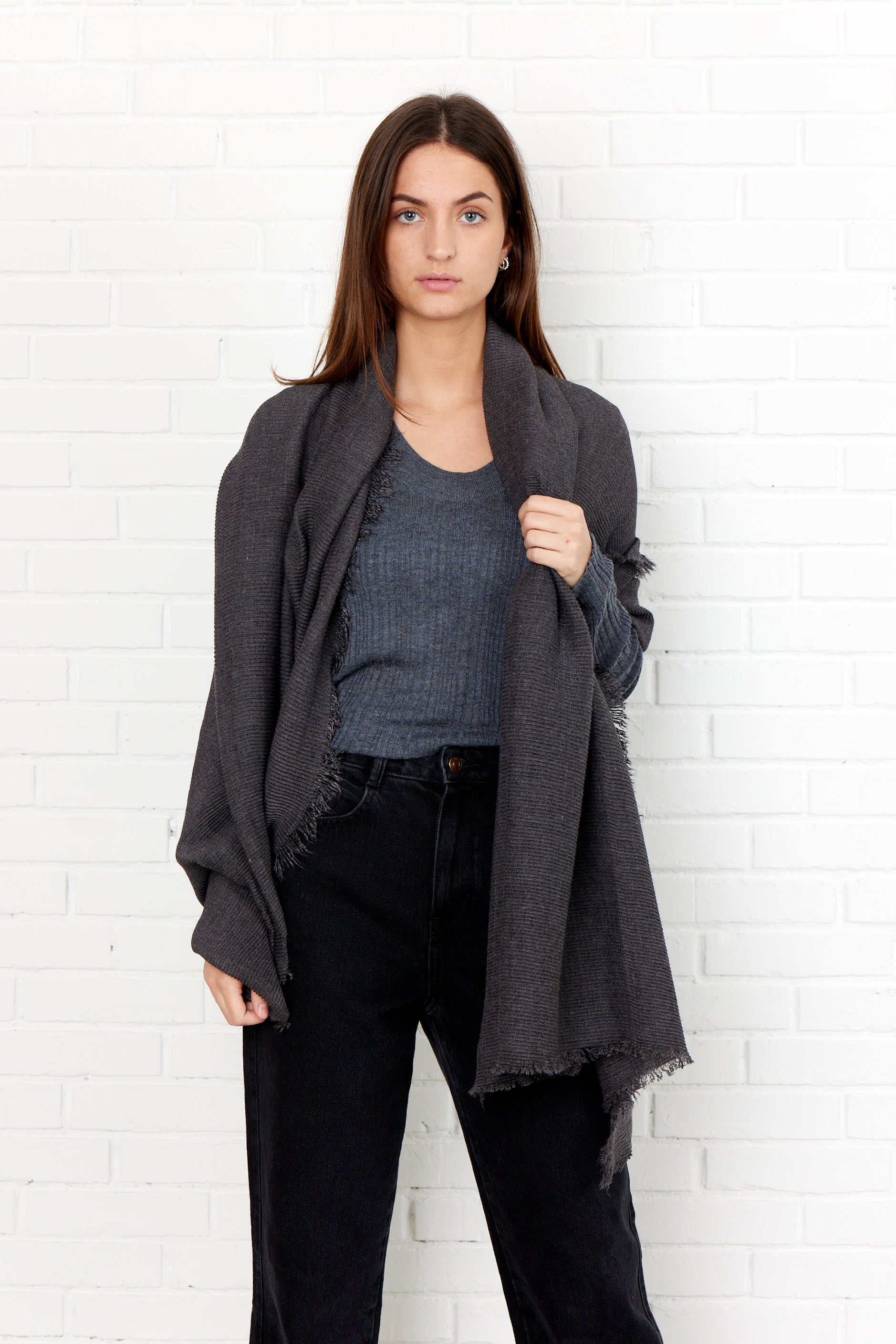 Large and soft plain Scarf in a waffled Viscose/ Polyester quality with raw edges.