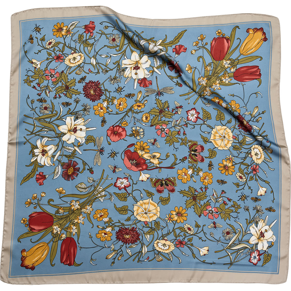 Square Scarf with floral print and solid edge.