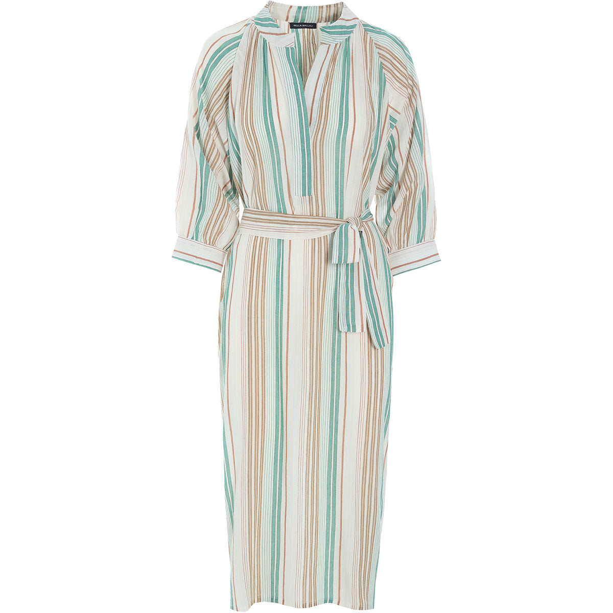 Kaftan dress with placket closure and hidden buttons, Mandarin collar and loose belt in a soft yarn-dyed viscose.