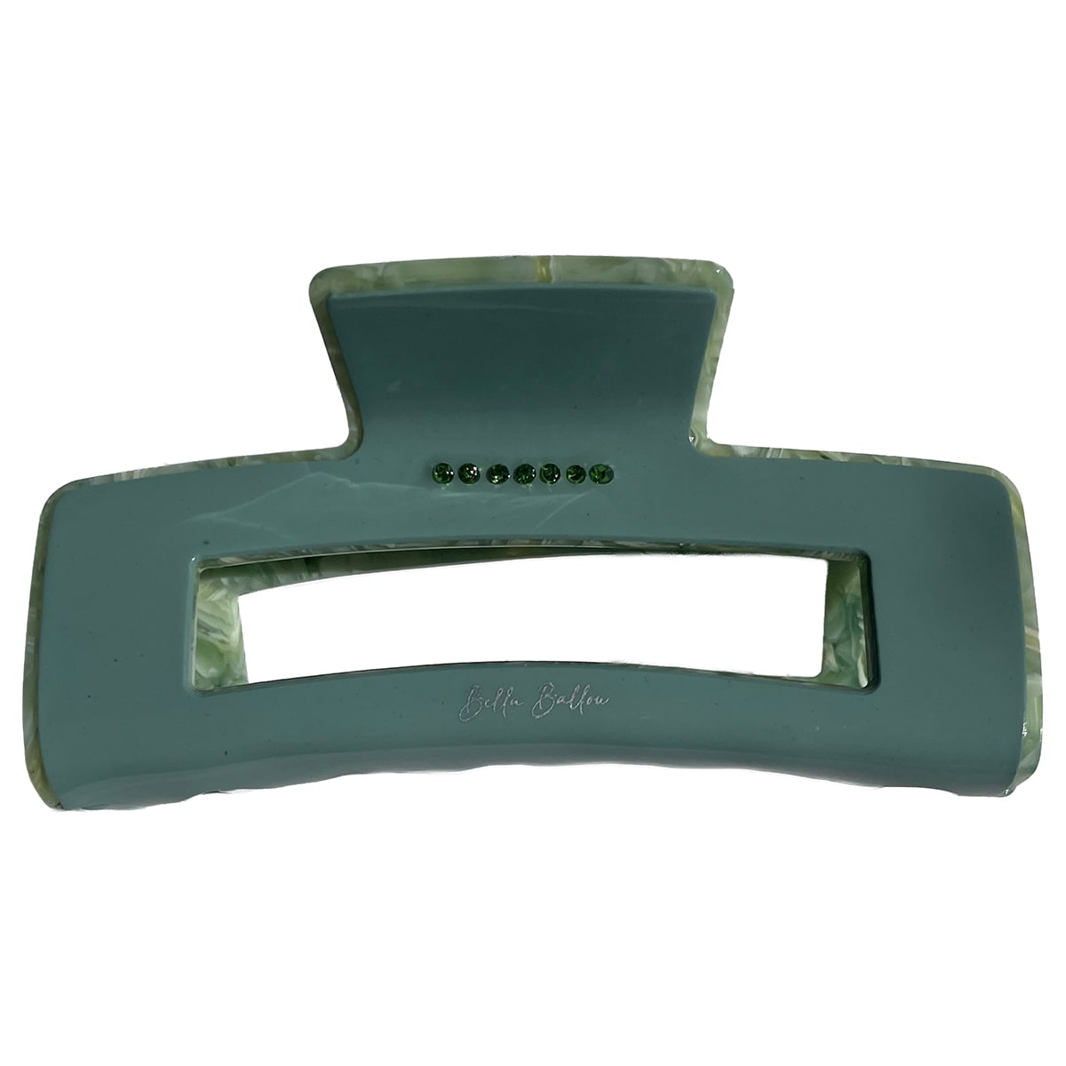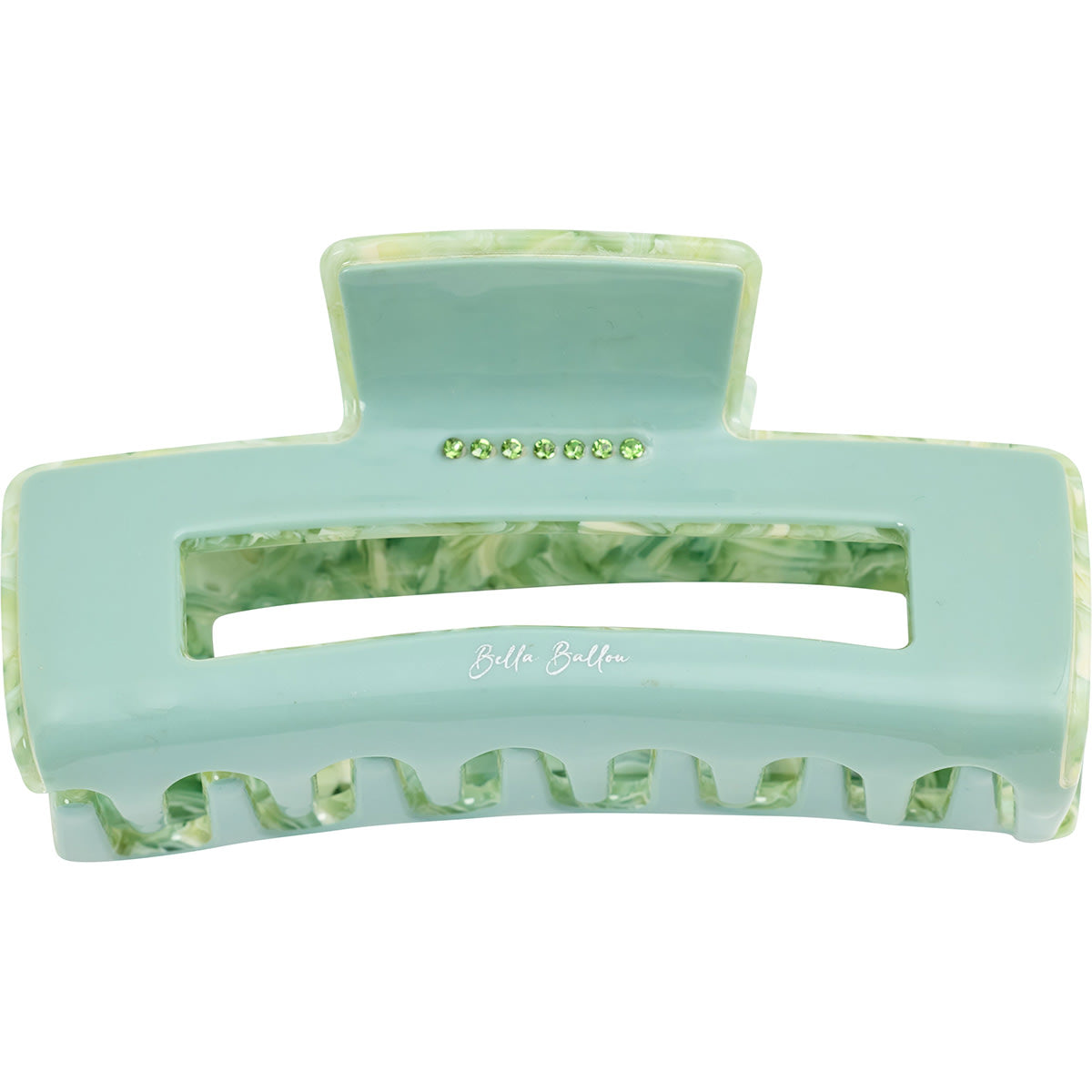 Robust hair clip with a row of rhinestones on both sides and silver-colored logo print. Madein eco-friendly Cellulose Acetate. Fits tight and well in the hair.