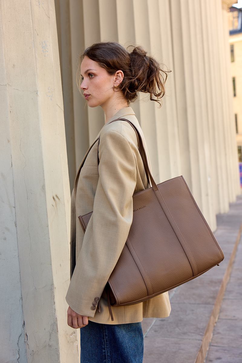 Tasken er fremstillet i en blød og eksklusiv PU, der giver et sofistikeret look og en behagelig finish. Det minimalistiske design gør den let at style til både hverdagsbrug og arbejdsdage, mens de gennemtænkte detaljer sikrer optimal funktionalitet.