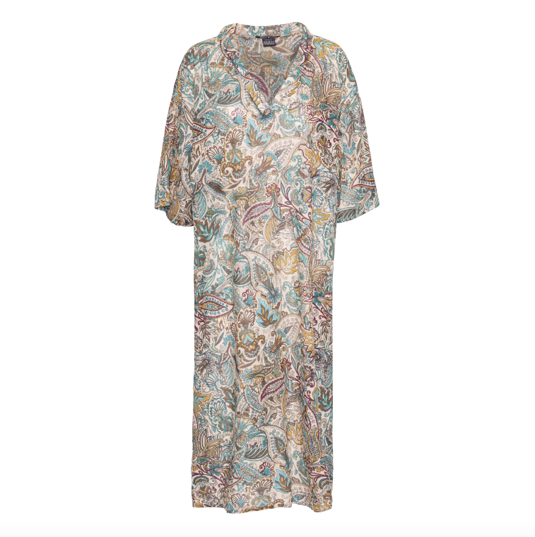 Strand Kaftan med V-ringning, 3/4 långa ärmar och löst bälte i en mjuk ekologisk bomull.