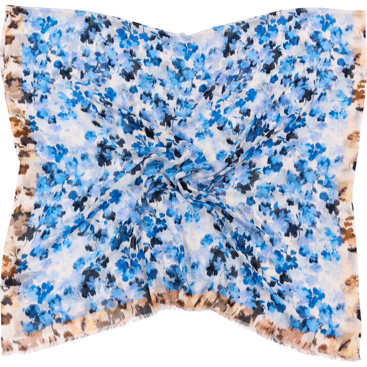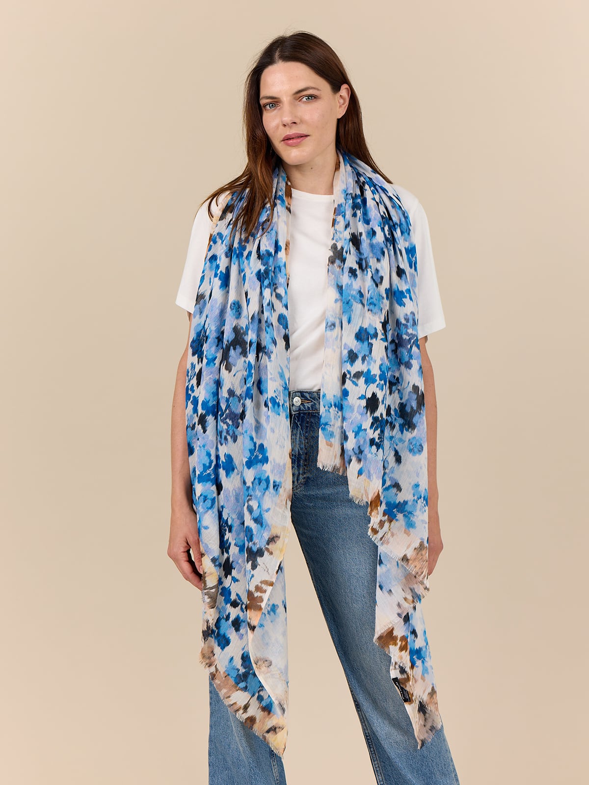 Stort avlångt Halsduk med suddigt blommotiv och kontrastkant i en mjuk bomull/Modal-kvalitet och råa ändar.