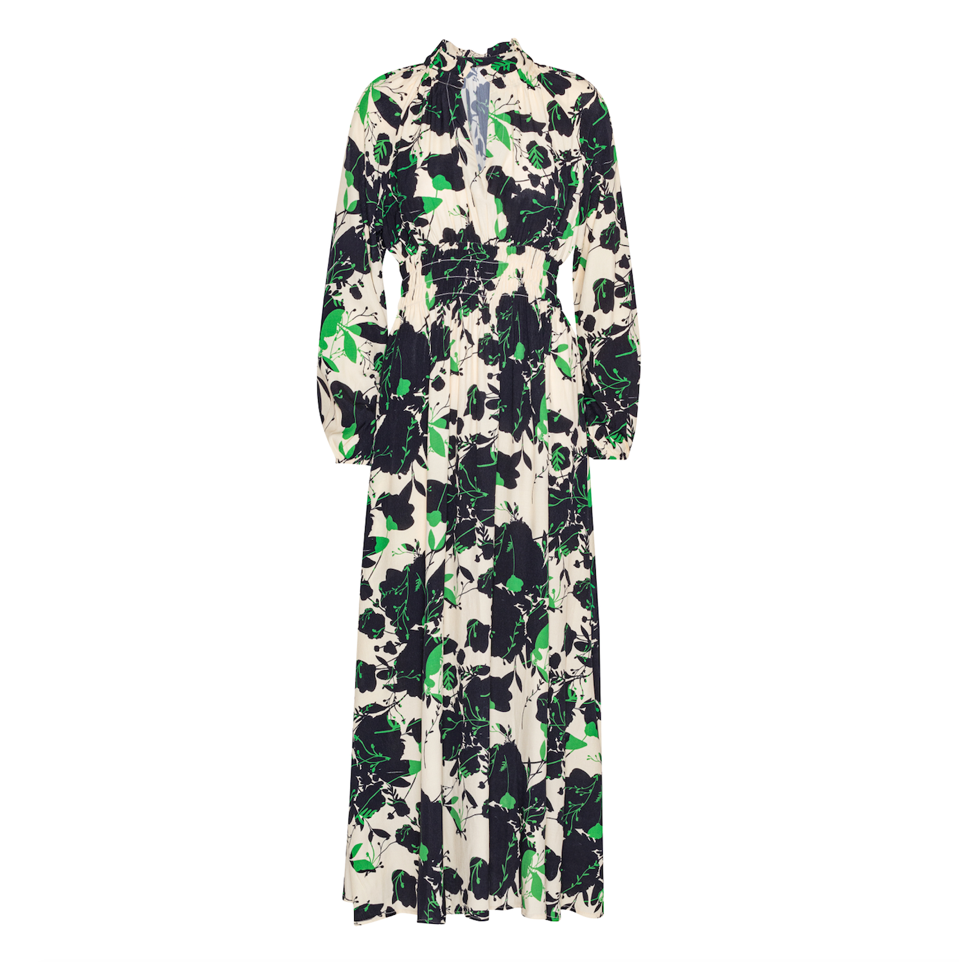 Maxiklänning med långa ärmar i en krinklad viskoskvalitet.