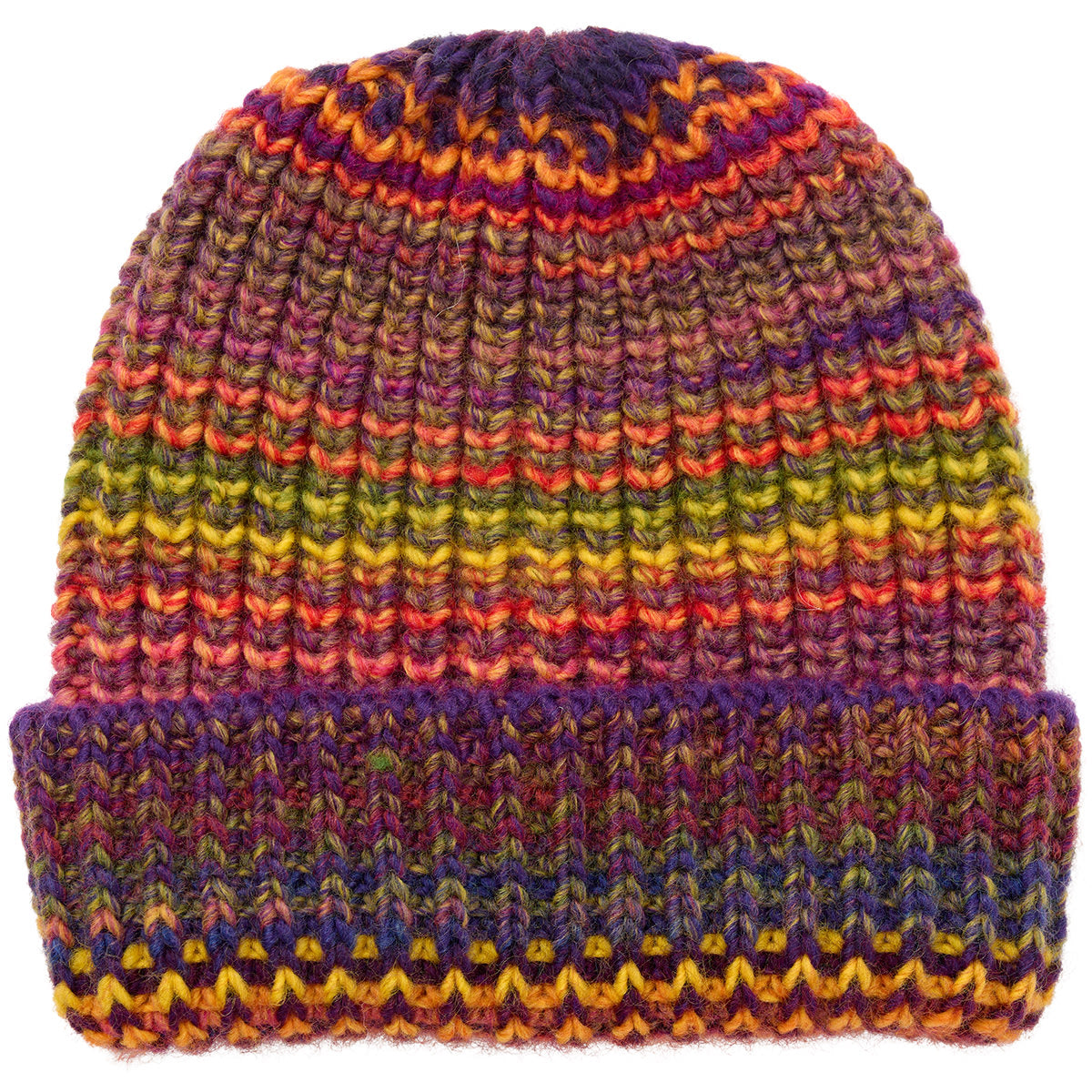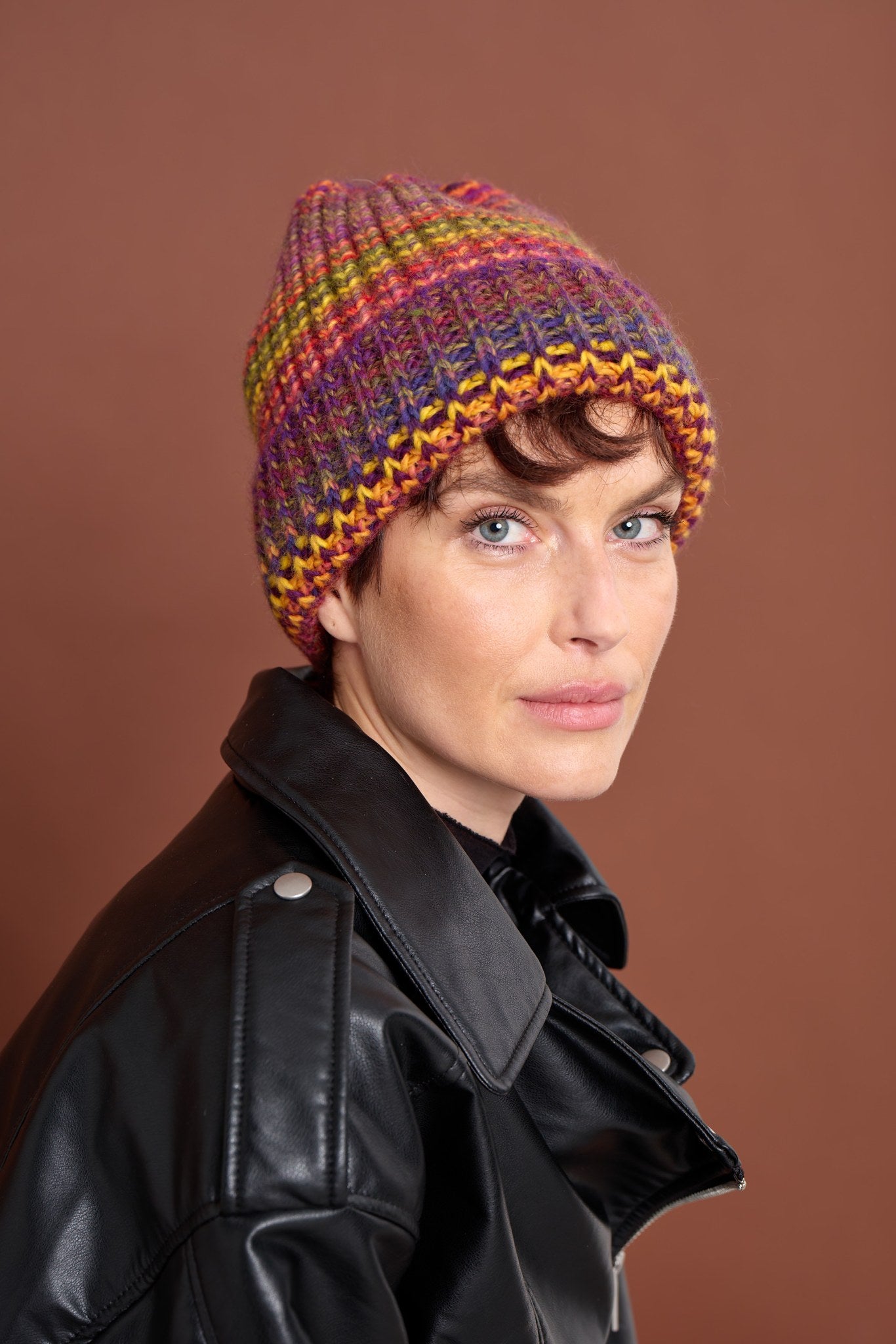 Randig stickadmössa i en kraftig varm "space dyed" ull mix från Italien.