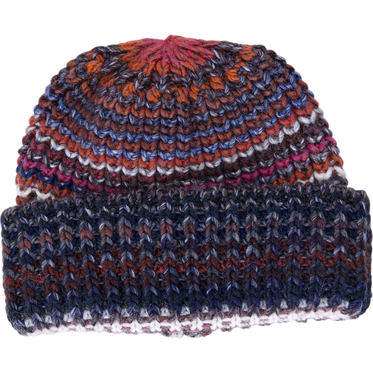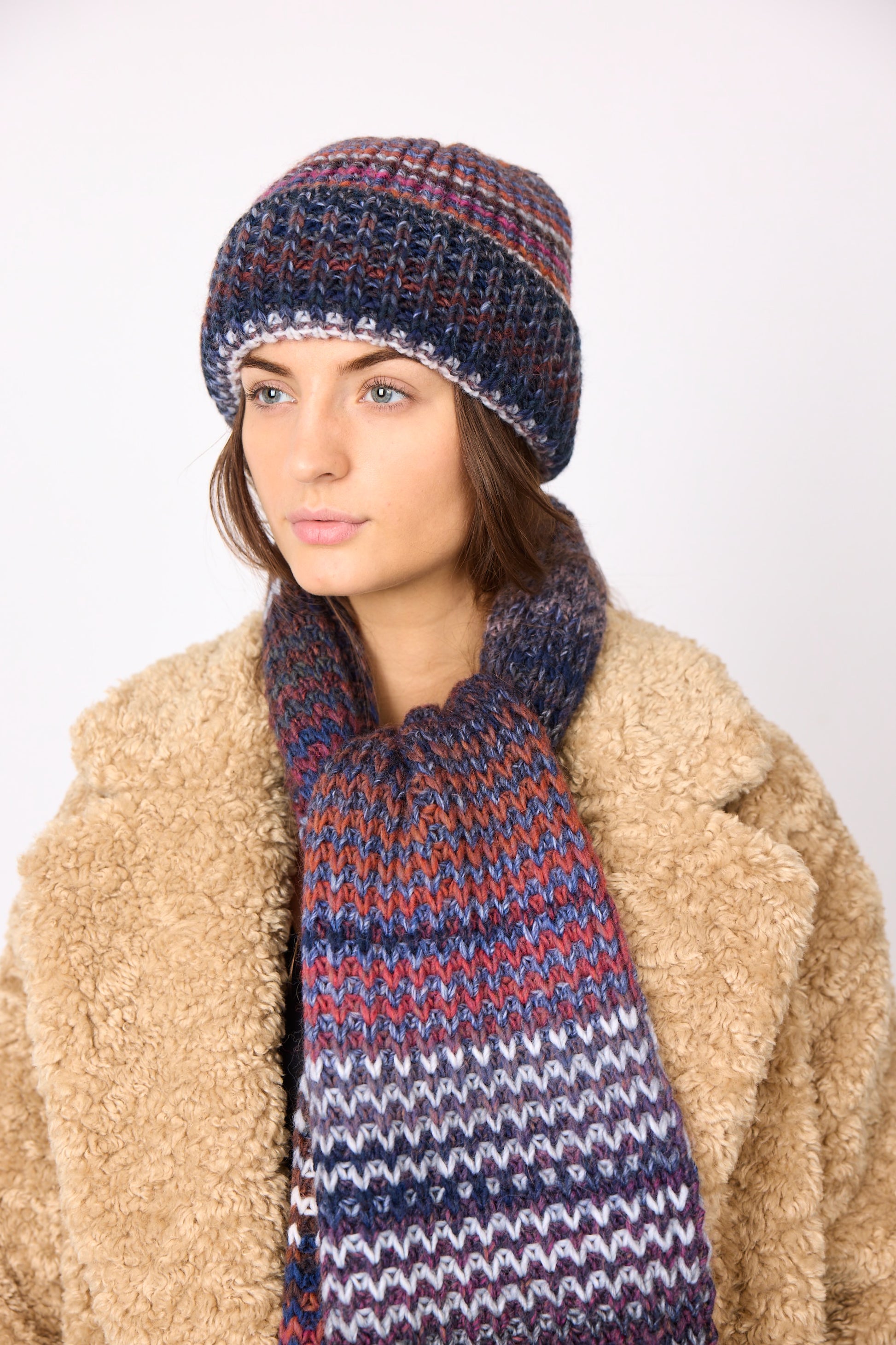 Den randiga stickade mössan i en stark varm"space dyed"ullmix från Italien.